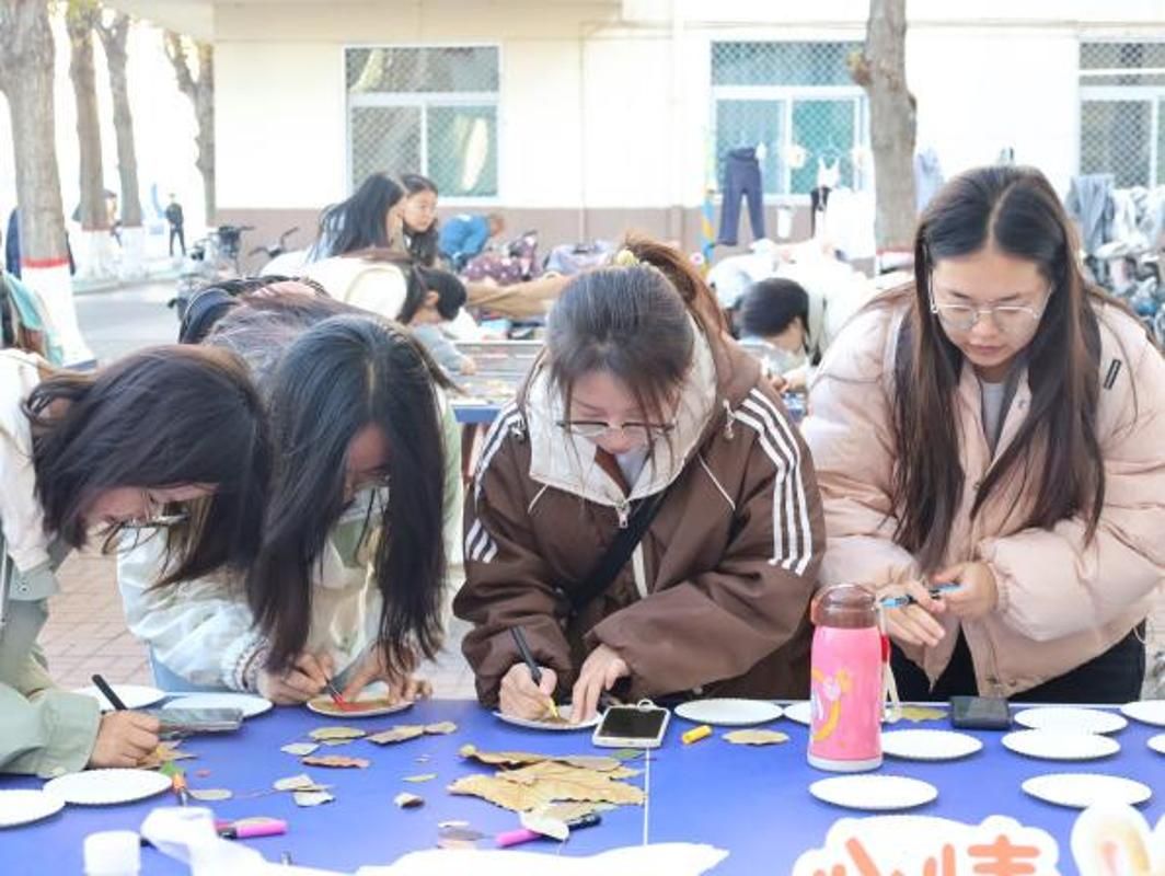 11月14日,财政与公共经济学院在学校坞城校区韶华里、春华里、芳华里、风华里四个社区开展“解压调色盘”一站式学生社区主题活动。活动通过让学生在调色盘和树叶上绘画释放压力,陶冶情操。学院全体院领导、辅导员和2023级、2024级本科生共500余人参加了此次活动。