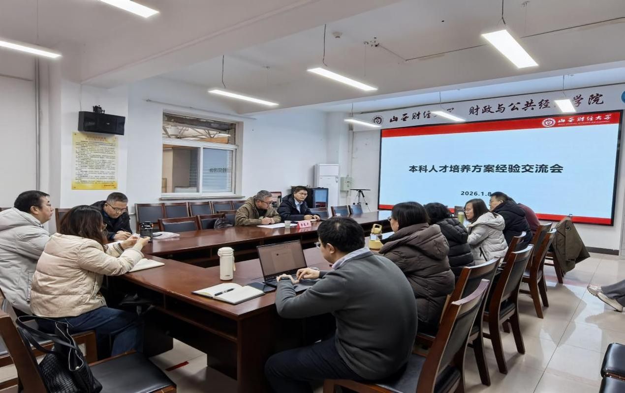 2026年1月8日下午,学院成功召开本科人才培养方案经验交流会。本次会议特别邀请管理科学与工程学院副院长荆树伟、文化旅游与新闻艺术学院副院长金春平莅临指导。学院副院长陈治、刘生旺,各教研室主任及部分教师代表参会,会议由陈治副院长主持。