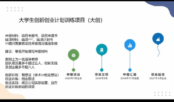 任锦民同学结合自己的参赛经历,从认识创赛、创赛全景图、创赛通关秘籍、创赛大复盘等四个方面给大家讲述了如何实现竞赛“从0到1”的跃迁。他主要向同学们分享了大学生创新创业计划训练项目申报材料的撰写、中期项目汇报和项目结项的注意事项,讲解了“挑战杯”全国大学生课外学术科技作品竞赛的参赛经验和注意事项。