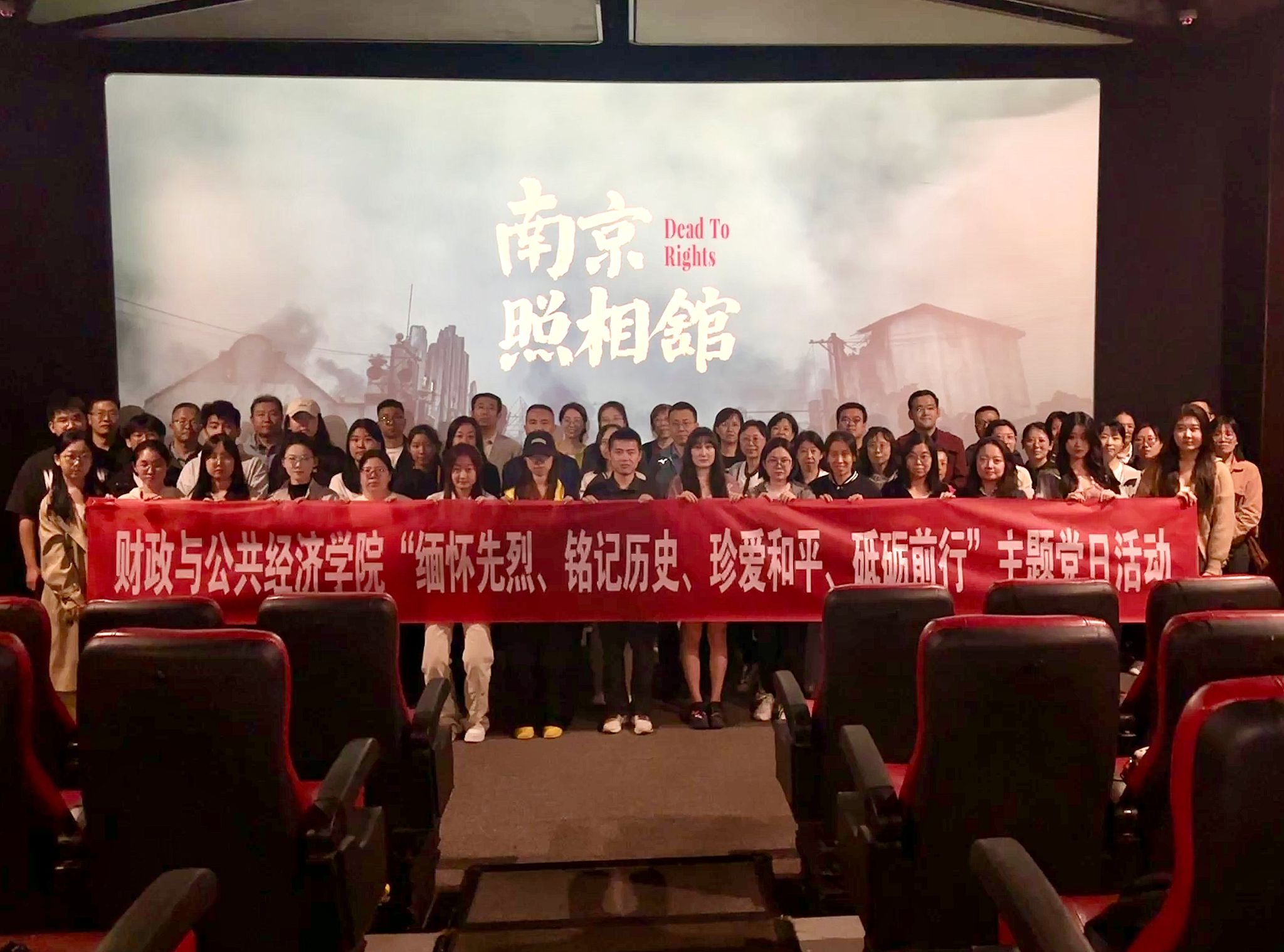 为进一步加强师生党员的爱国主义教育和党性修养,财政与公共经济学院于9月30日下午组织开展了“缅怀先烈、铭记历史、珍爱和平、砥砺前行”主题党日活动,60余名师生党员集中观看爱国主义题材电影《南京照相馆》。
