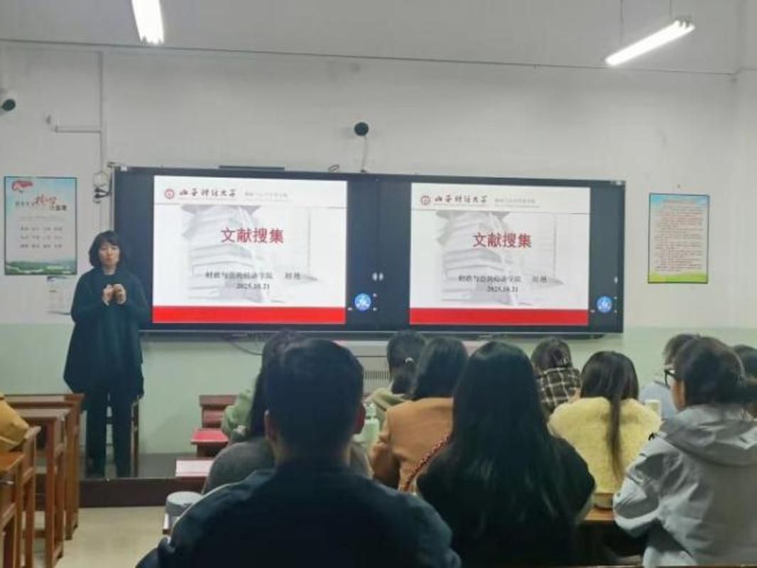 沙龙伊始,刘艳老师以“学术研究的源头活水——文献”为主题,聚焦文献搜集环节,为同学们打开了实用工具与海量资源的大门。刘老师详细介绍了多款核心检索平台,推荐了多本财政学领域的核心刊物,强调文件搜集不仅是 “找资料”,更是筛选优质信息、奠定研究方向的关键,为后续学术工作打下坚实基础。